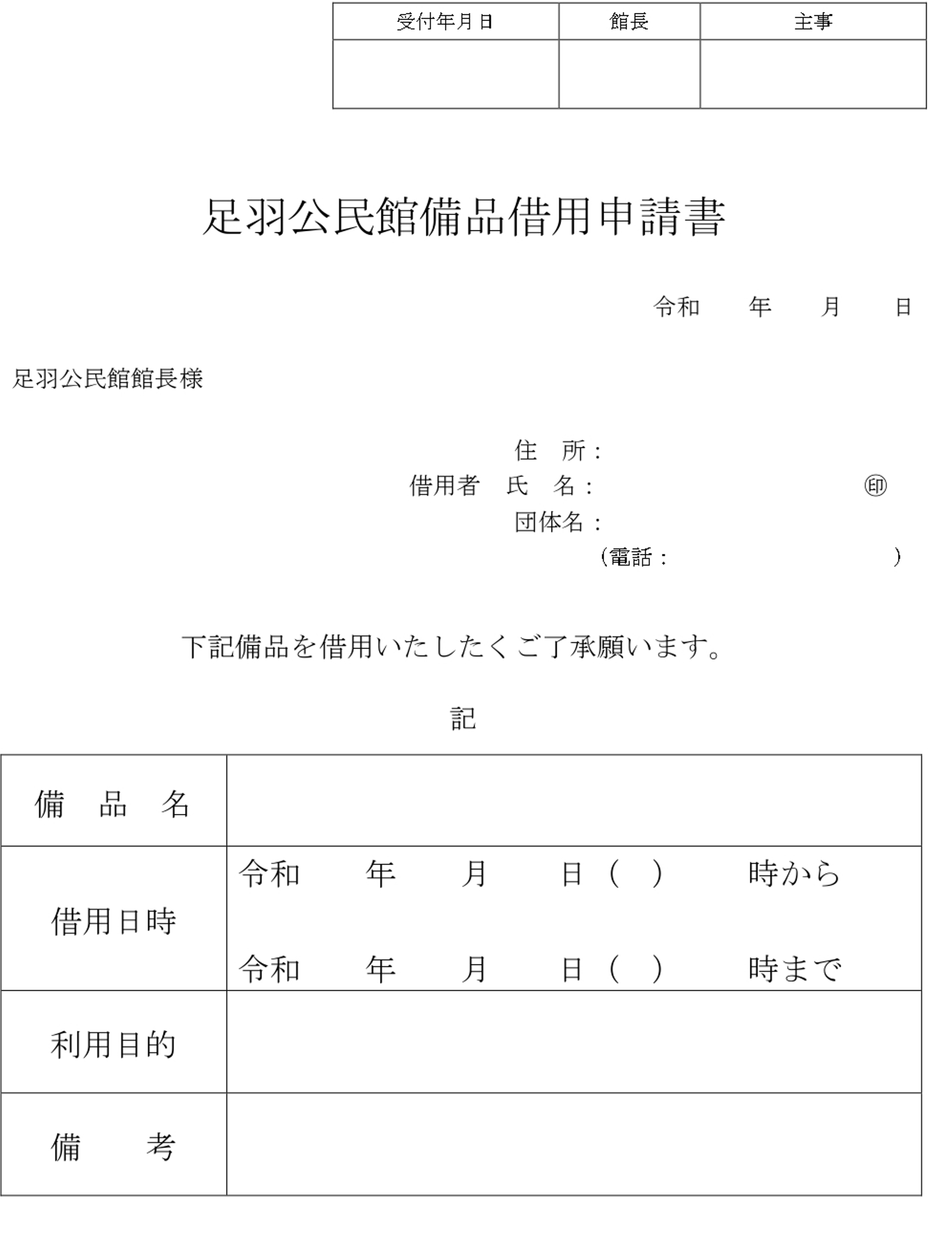 ■↓公民館備品借用申請書