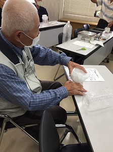 足羽公民館には、市より雨水タンクが設置されており、洪水対策や災害時、水の活用や飲み水使えることを学びました。その後、ペットボトルを使ったろ過器を作り、炭を使ってろ過実験も行いました。